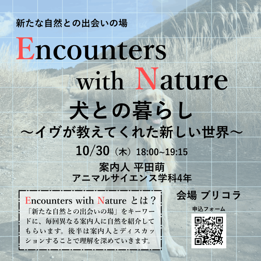 本イベントは「新たな自然との出会いの場」をキーワードに、毎回異なる案内人に、案内人が魅力に感じる“自然”を紹介してもらいます。 後半は案内人とディスカッションをすることで、新たな自然への理解を深めていきます。